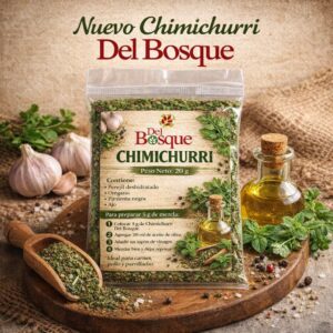 También se presenta el nuevo Chimichurri Del Bosque, una mezcla de perejil, orégano, pimienta y ajo, especias cuidadosamente seleccionadas, perfecta para acompañar carnes, vegetales, parrilladas y diversas preparaciones. Su práctico formato permite prepararlo fácilmente agregando aceite de oliva y un toque de vinagre, logrando un aderezo lleno de aroma y sabor.