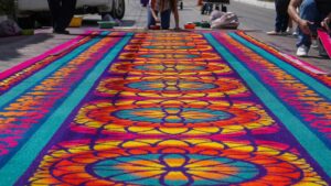 Guatemala es reconocida internacionalmente por sus espectaculares procesiones, especialmente en Antigua Guatemala, ciudad declarada Patrimonio de la Humanidad por la UNESCO. Durante la Semana Santa, sus calles empedradas se llenan de color con las icónicas alfombras de aserrín, flores, frutas y verduras.